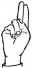 На ћирилици написано МИЛИЈАС ВЕСЕЛИНОВИЋ састоји се из 18 слова [?]. Исписано ћириличном једноручном азбуком за глувонеме: